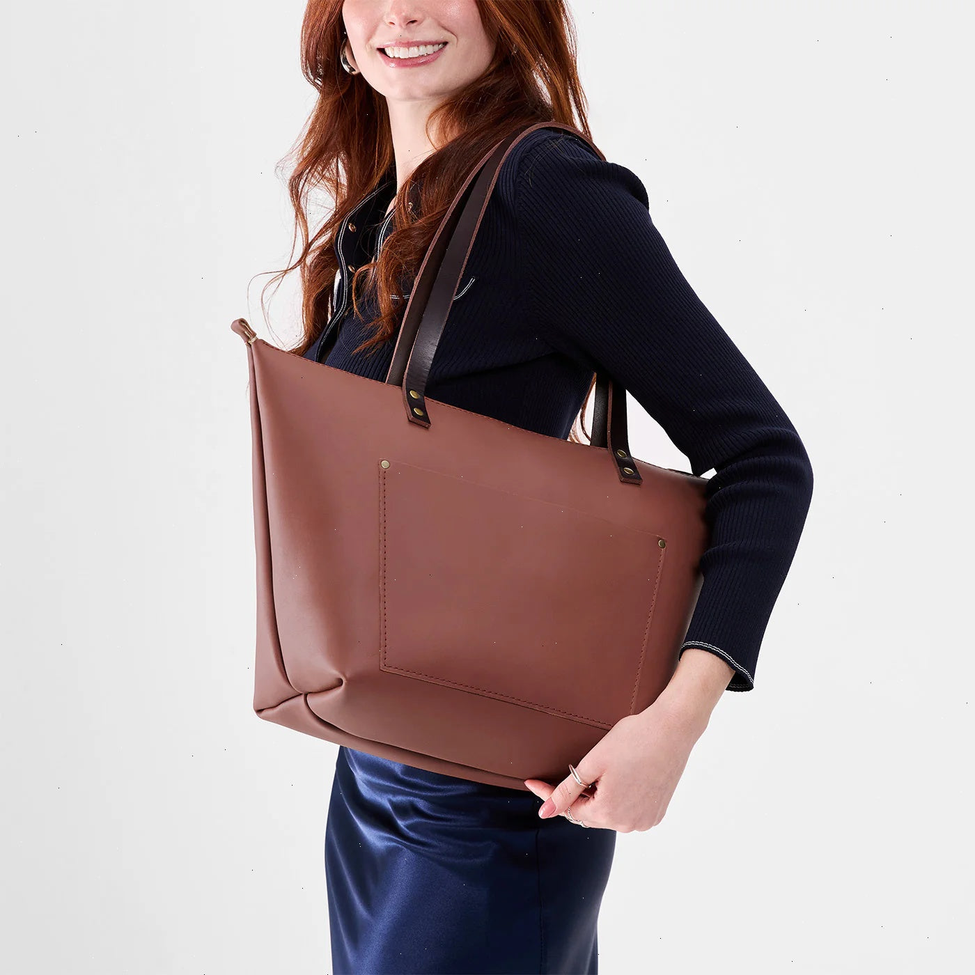 Our durable leather goods are unlined, featuring the natural suede side of the hide. Since fabric-lined bags inevitably discolor and tear with use, we chose to showcase the soft sueded underside of our hides, ensuring that your bag lasts a lifetime.